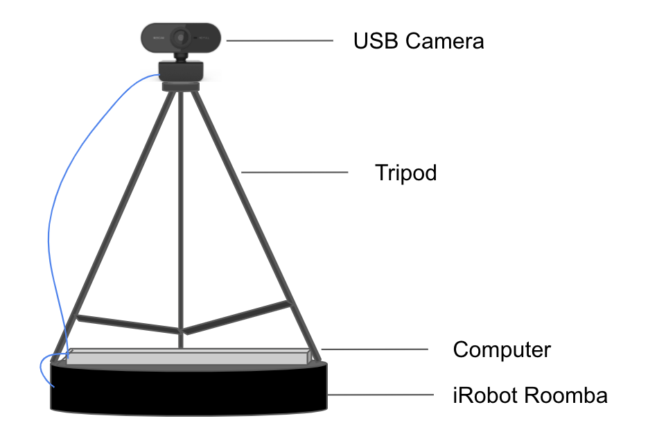 - We have used a tripod to hold the mobile camera. Figure 1&2 demonstrate the graphic design of the robot and how it actually looks like.